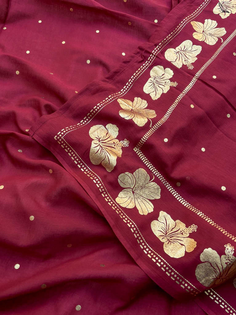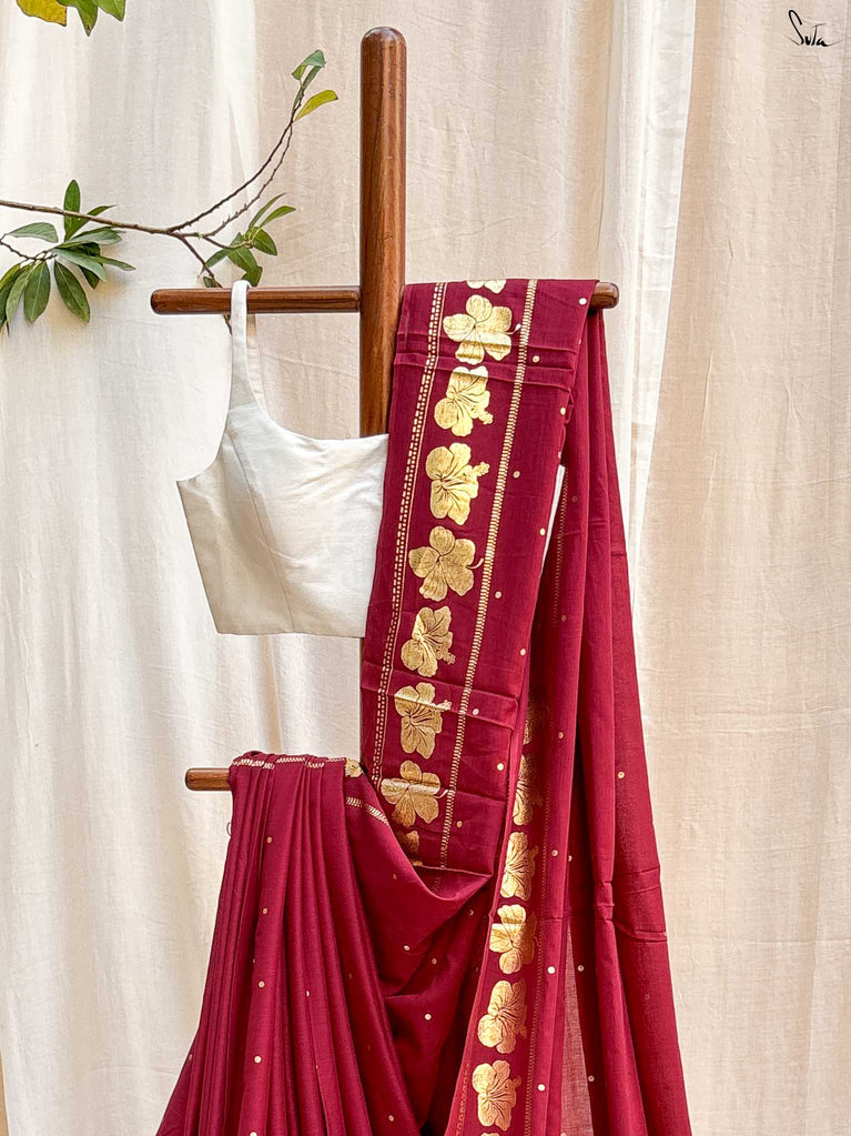 Note: Our mul sarees are slightly transparent, it’s the nature of the fabric and part of its soft, airy charm.