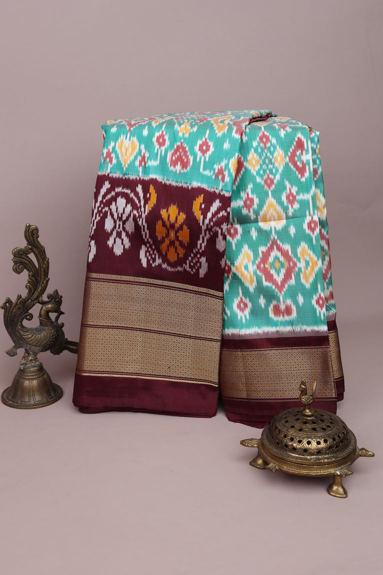 Ikat Silk Sea Green Saree