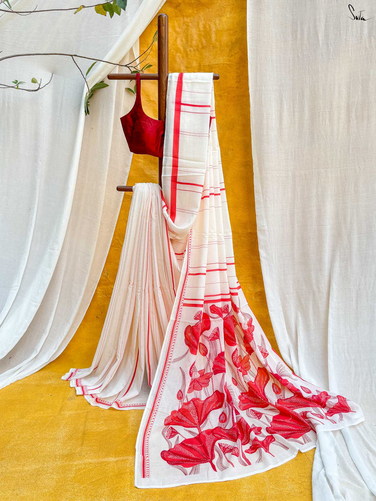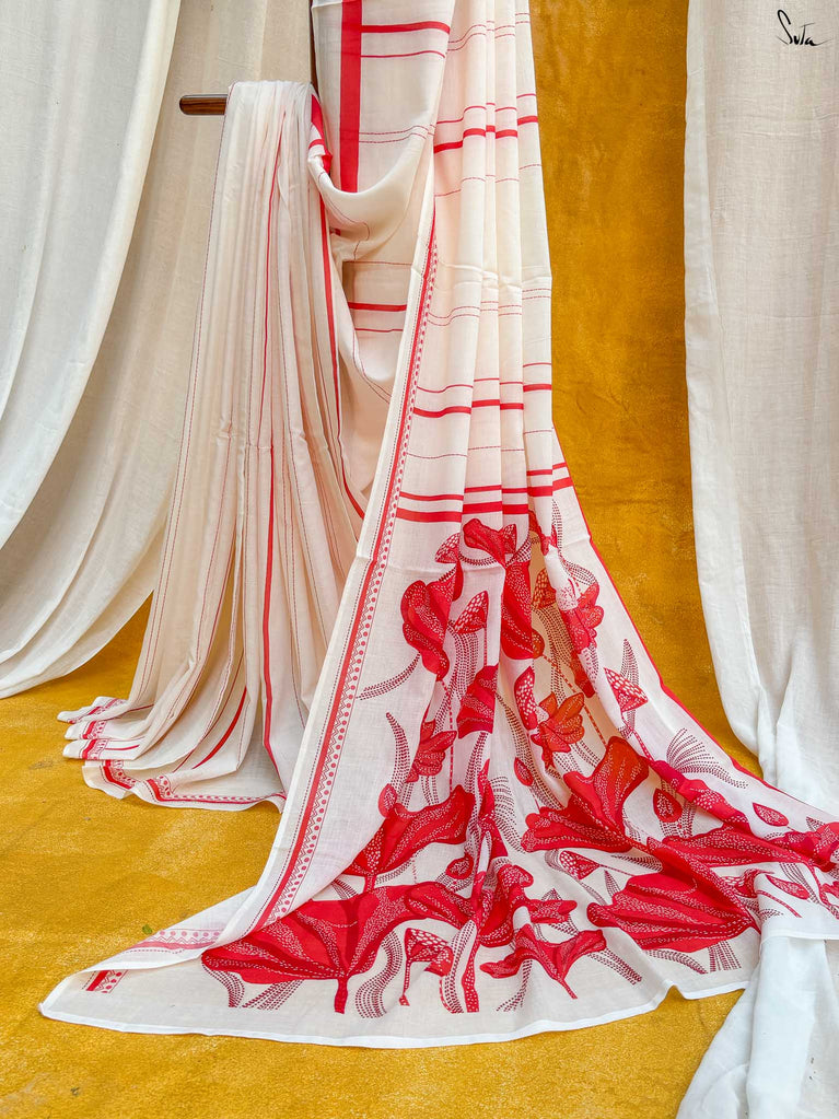 Note: Our mul sarees are slightly transparent, it’s the nature of the fabric and part of its soft, airy charm.