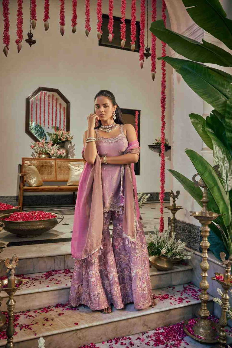 Elevate your wardrobe with the Lavender Tissue Hand Embroidery Palazoo Set, a perfect blend of delicate craftsmanship and refined style. Crafted from lightweight tissue fabric, this set features intricate hand embroidery that adds timeless elegance and subtle texture. Its graceful silhouette ensures comfort while making a sophisticated statement suitable for both formal gatherings and tasteful casual outings. Experience the harmony of traditional artistry and modern design in this exquisite ensemble.