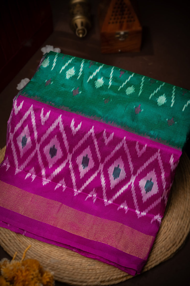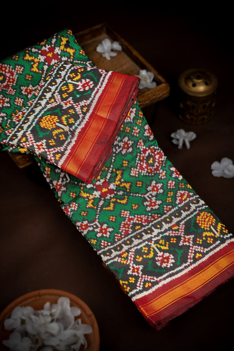 Mandir Green & Multi-Colour Patan Patola Ikat Saree