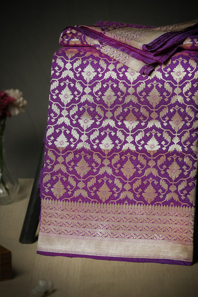 Mandir Deep Magenta & Gold Banarasi Jaal Saree