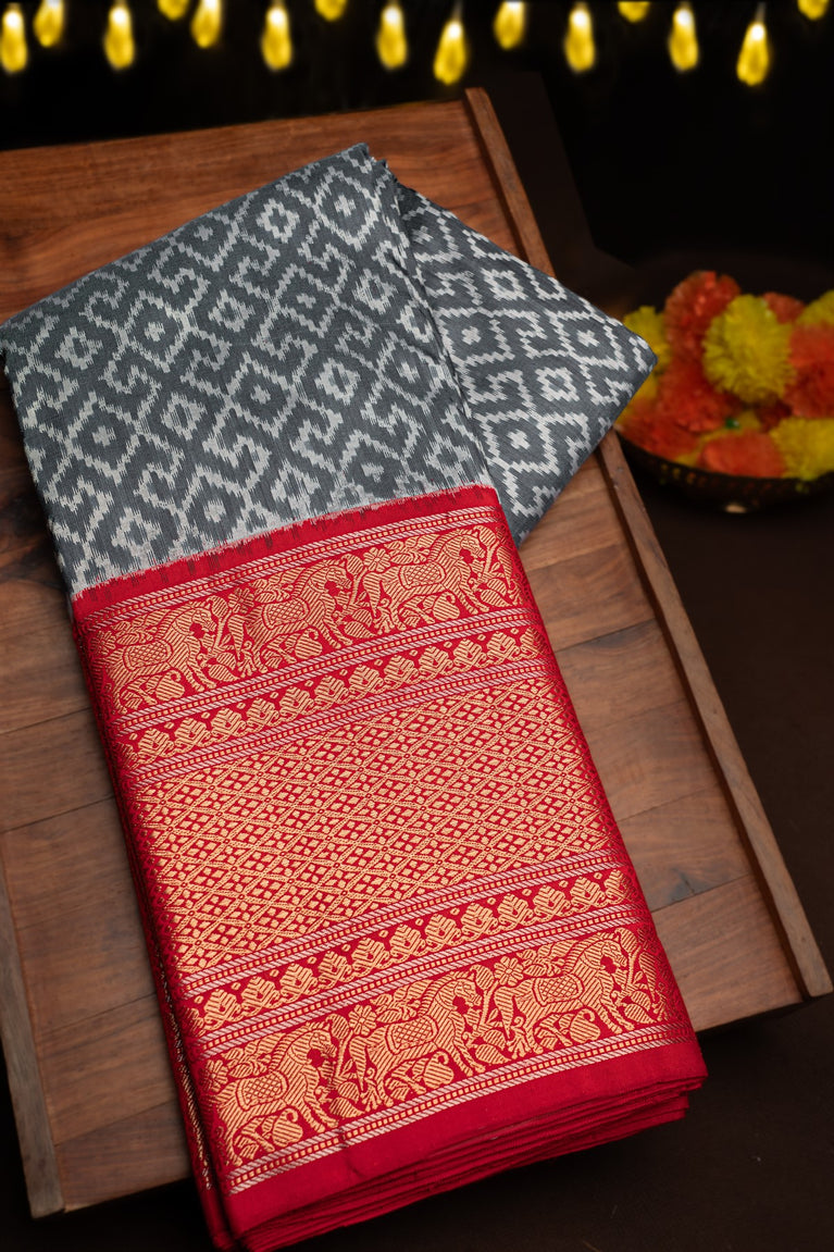 Mandir Grey & Red Kanchi Ikat Ikat Saree