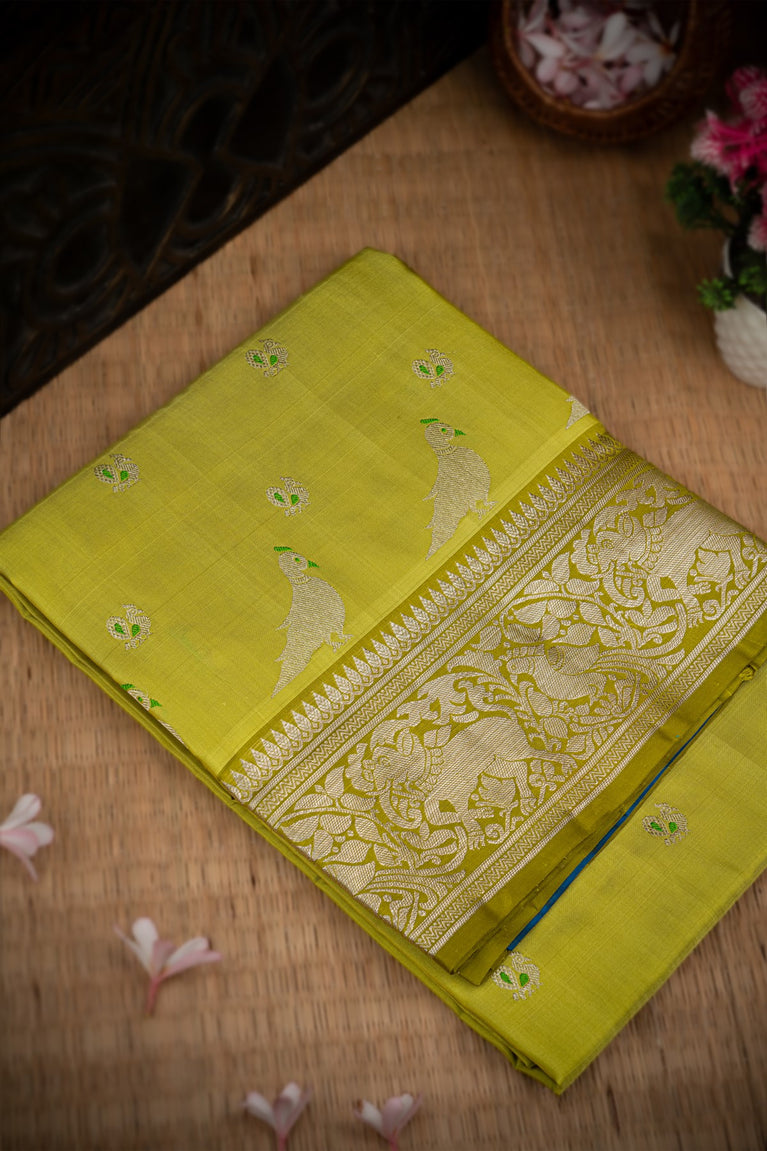 Mandir Light Green & Olive Green Uppada Buttis Saree