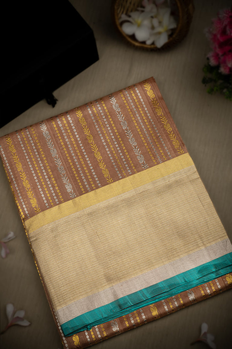 Mandir Light Brown & Sea Green Venkatagiri Floral Jaal Saree