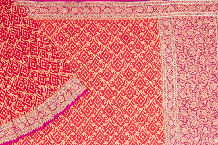 Mandir Onion Pink & Gold Banarasi Floral Jaal Saree