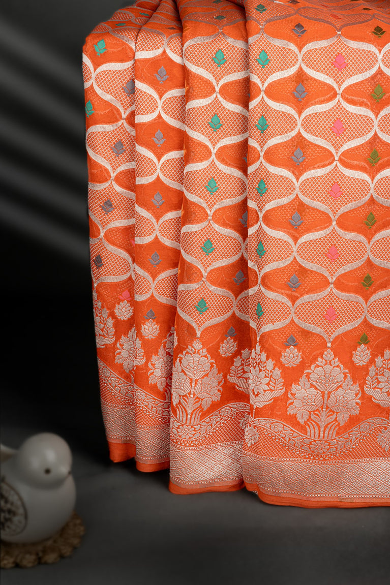 Mandir Orange & Pink Fancy Curvy Checks Saree