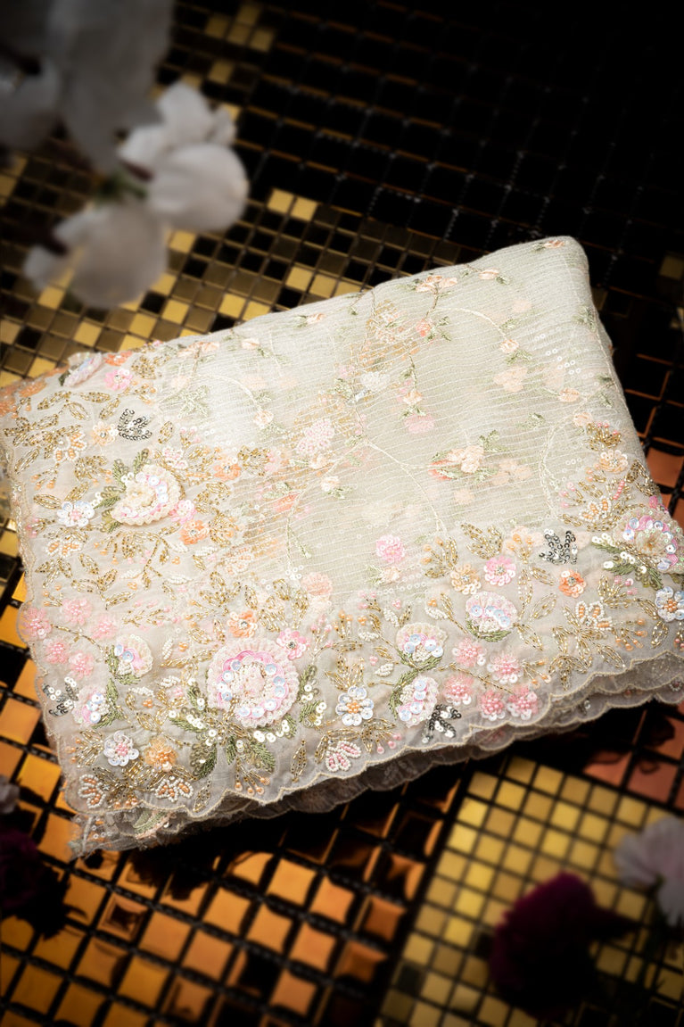 Mandir Off White & Mustard Venkatagiri Motifs Saree