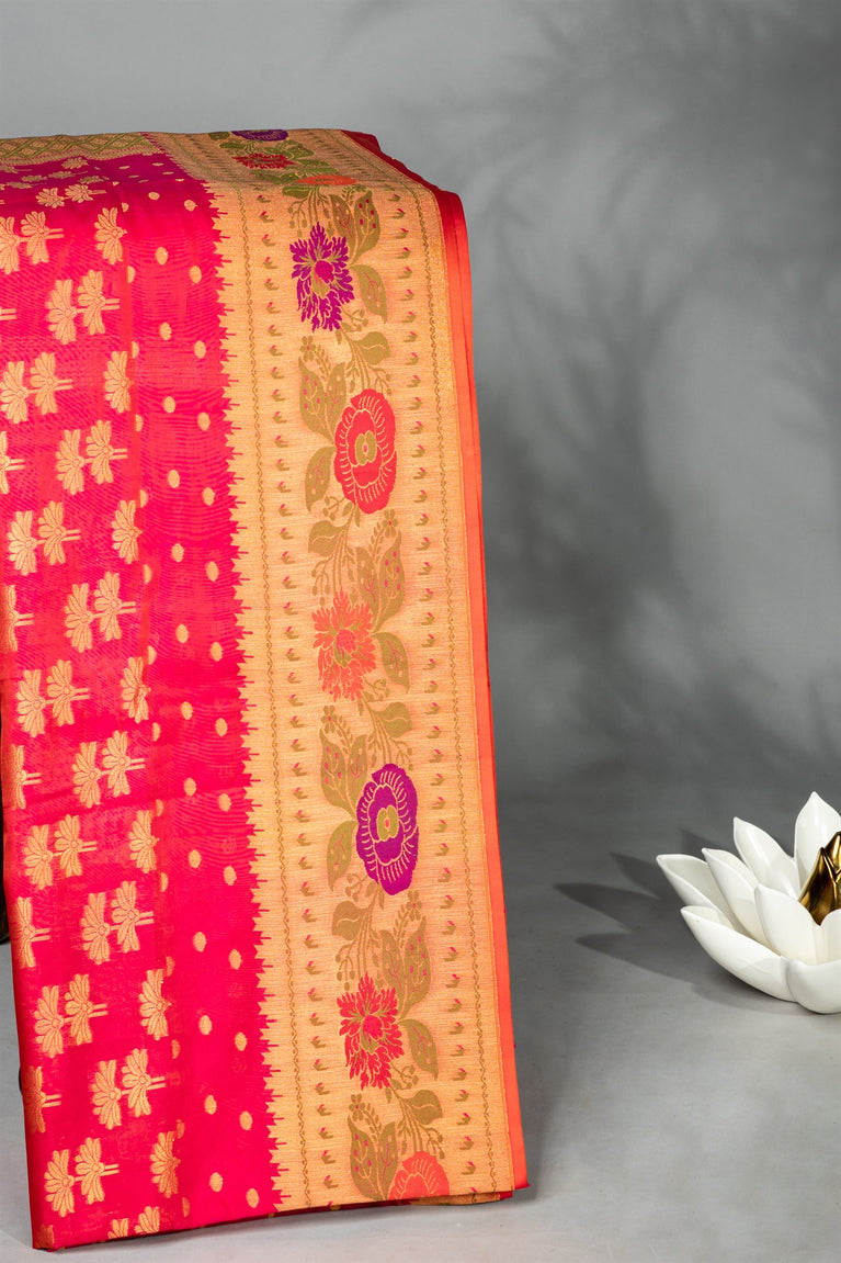 Mandir Pink and Orange & Gold Fancy Buttis Saree