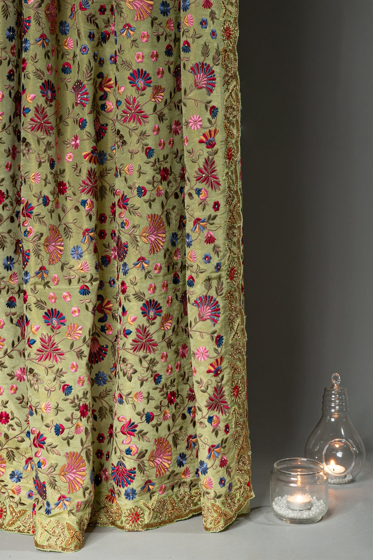 Mandir Pista Green & Pista Green Fancy Work Saree