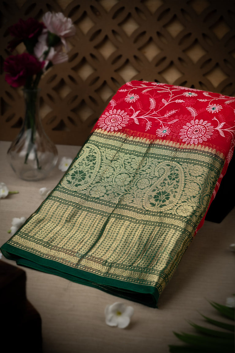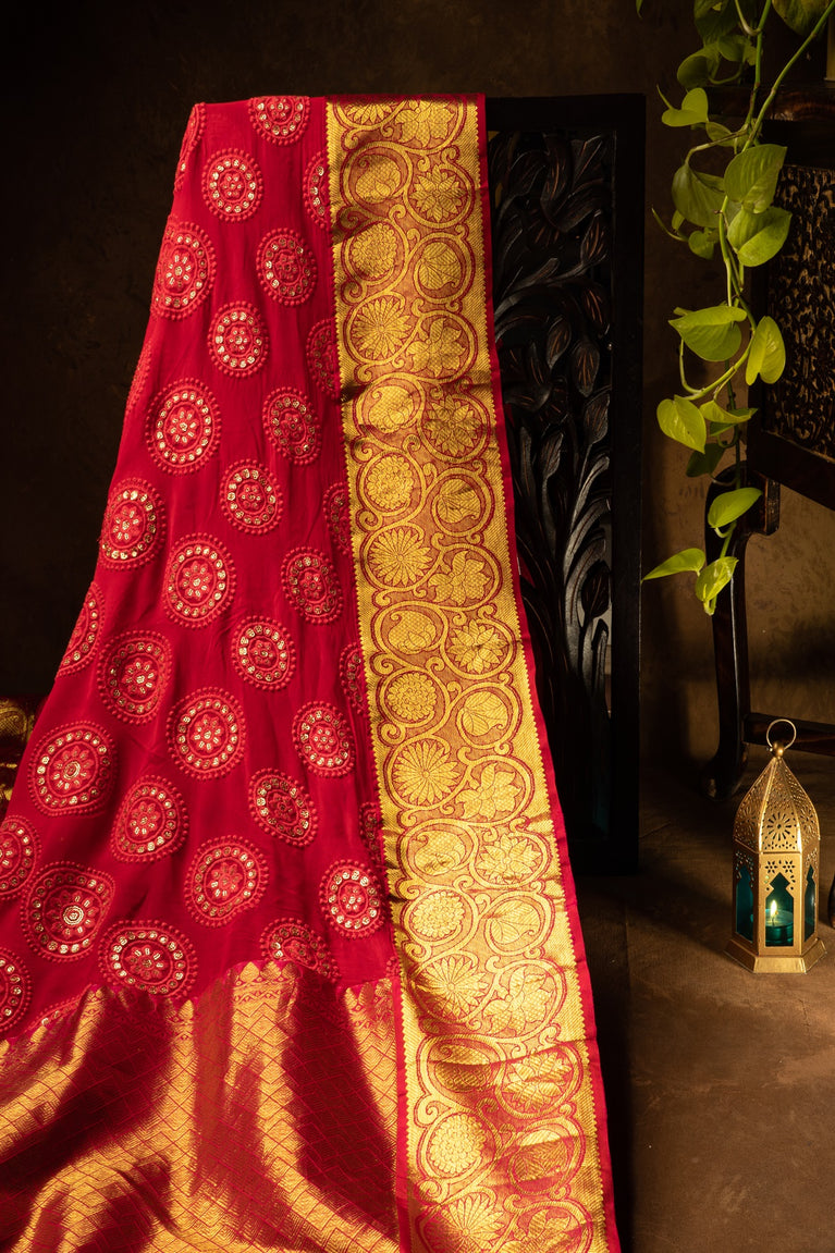 Mandir Red & Reddish Pink Kanchi Chikankari Circles Saree