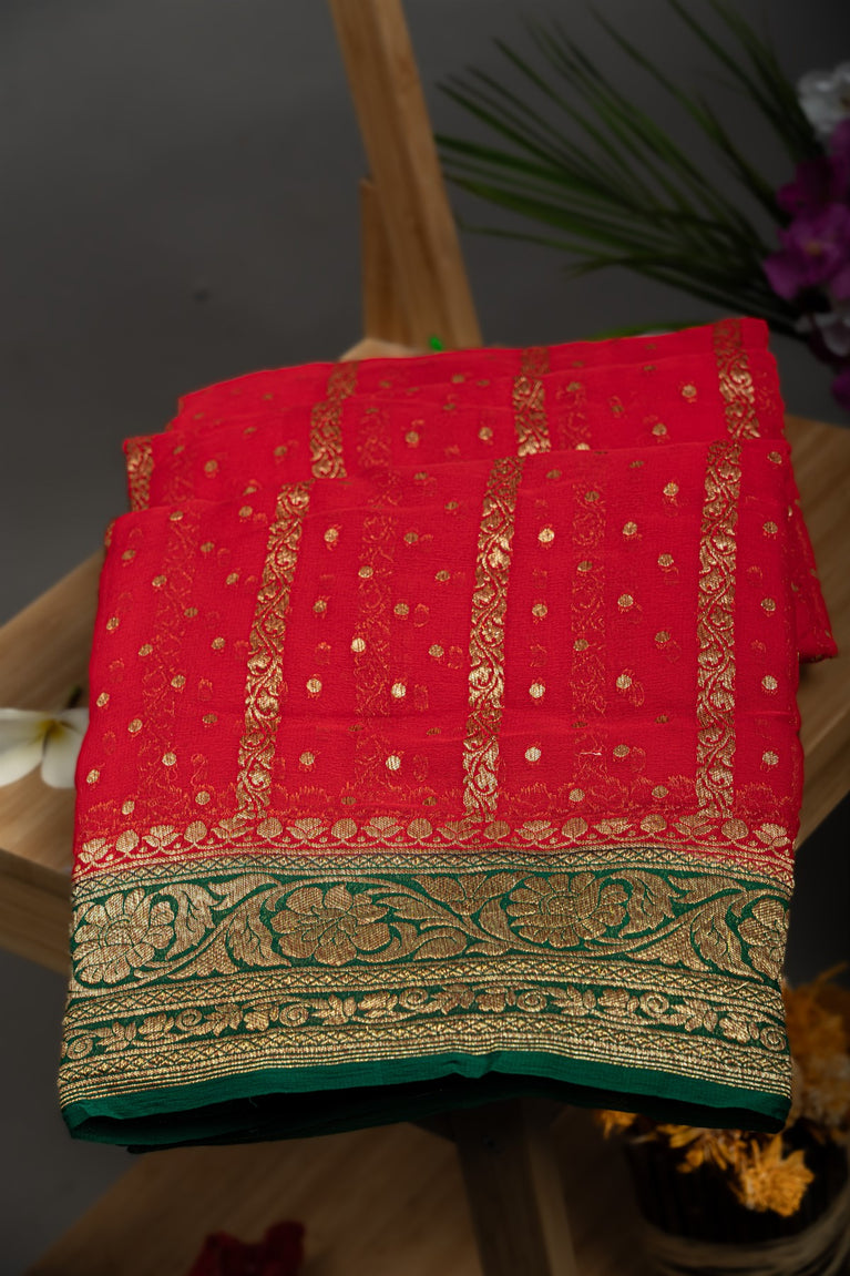 Mandir Red & Gold Banarasi Floral Jaal Saree