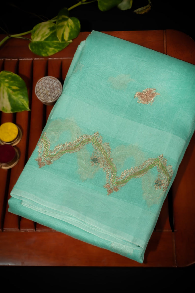 Varamahalakshmi Aqua Green & Aqua Green Fancy Motifs Saree
