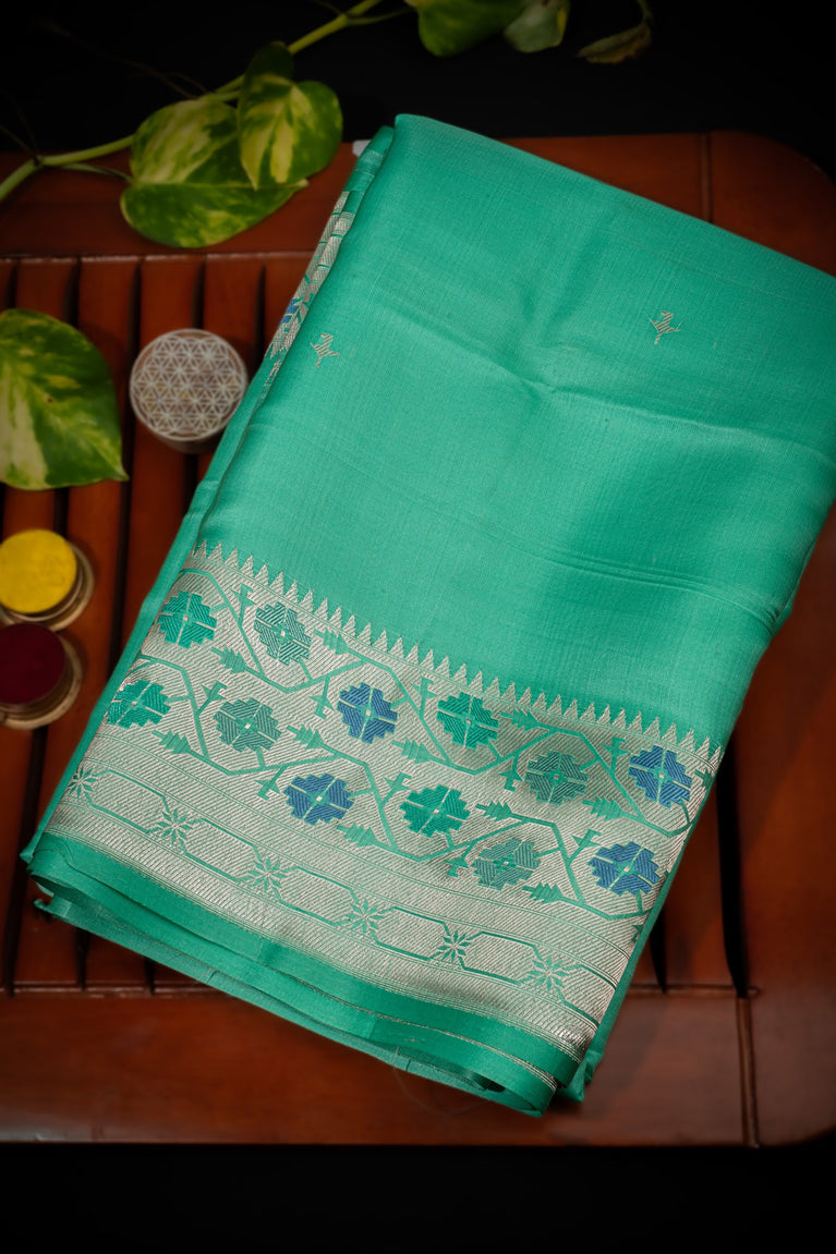 Varamahalakshmi Aqua Green & Silver Fancy Buttis Saree