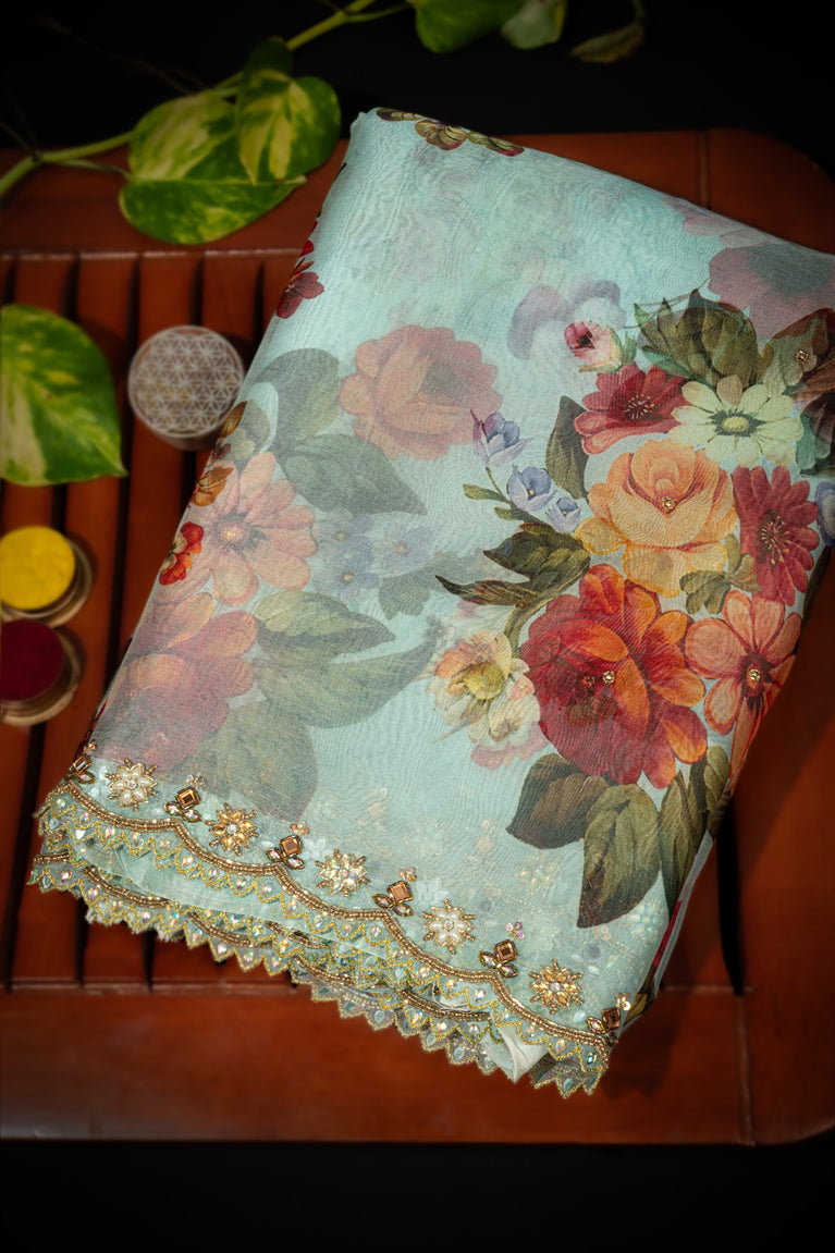 Varamahalakshmi Aqua Blue & Multi-Colour Fancy Florals Saree