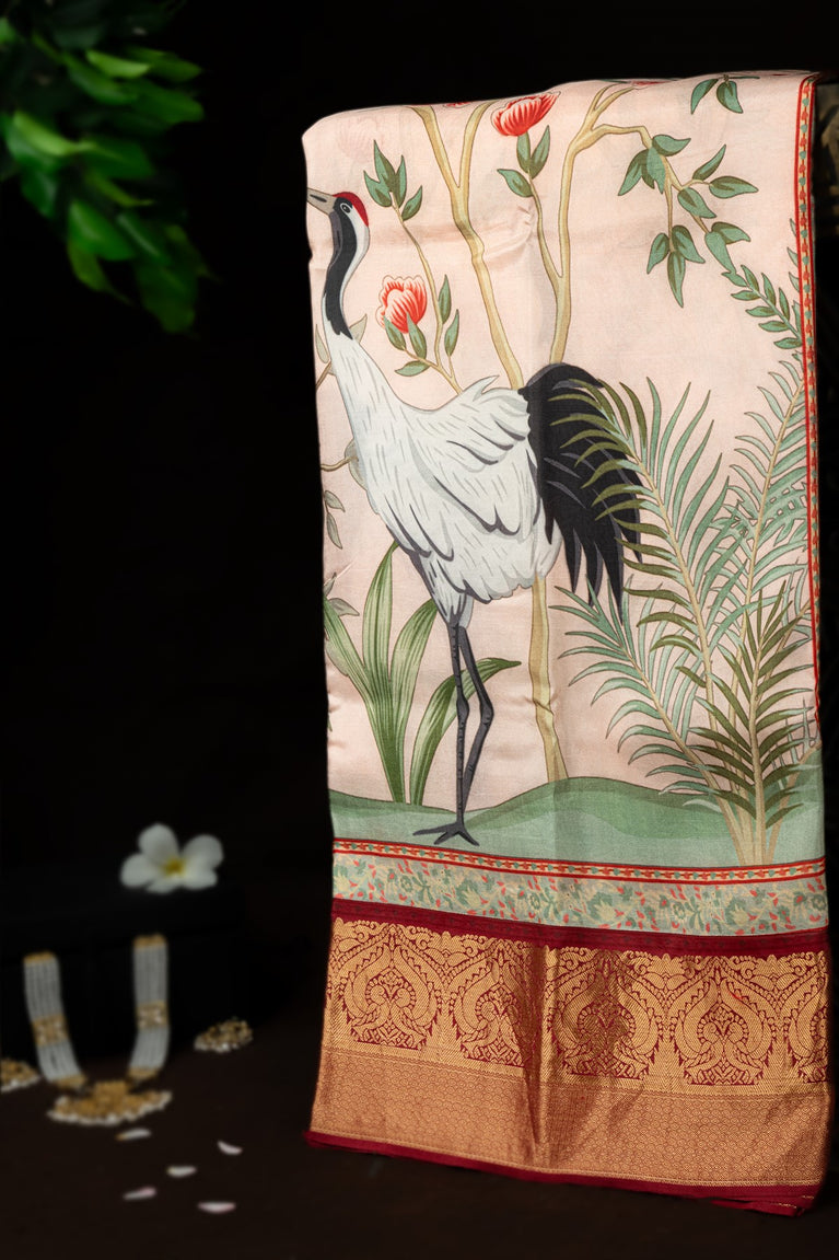 Varamahalakshmi Baby Pink & Maroon Fancy Digital Print Saree