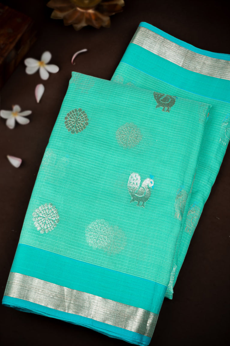 Varamahalakshmi Aqua Green & Blue Zari Kota Buttis Saree