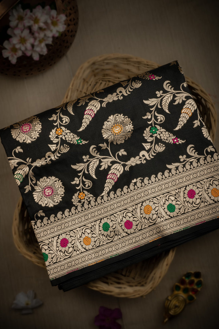 Varamahalakshmi Black & Gold Banarasi Floral Jaal Saree