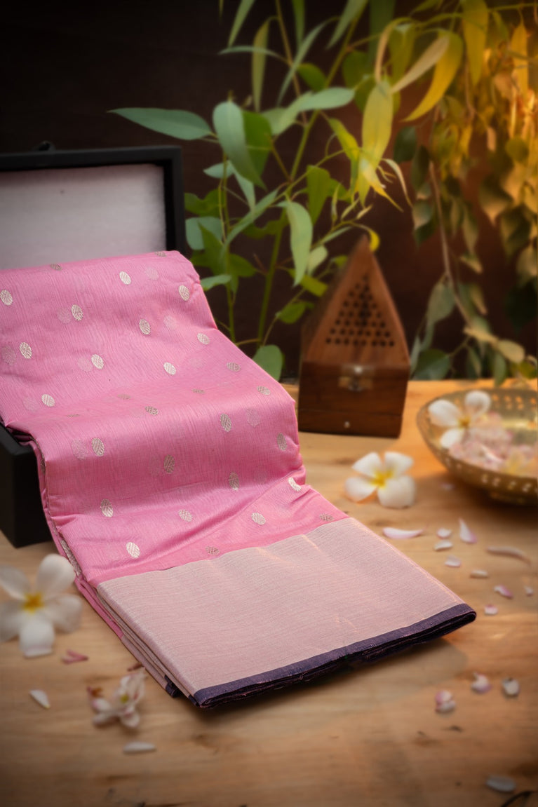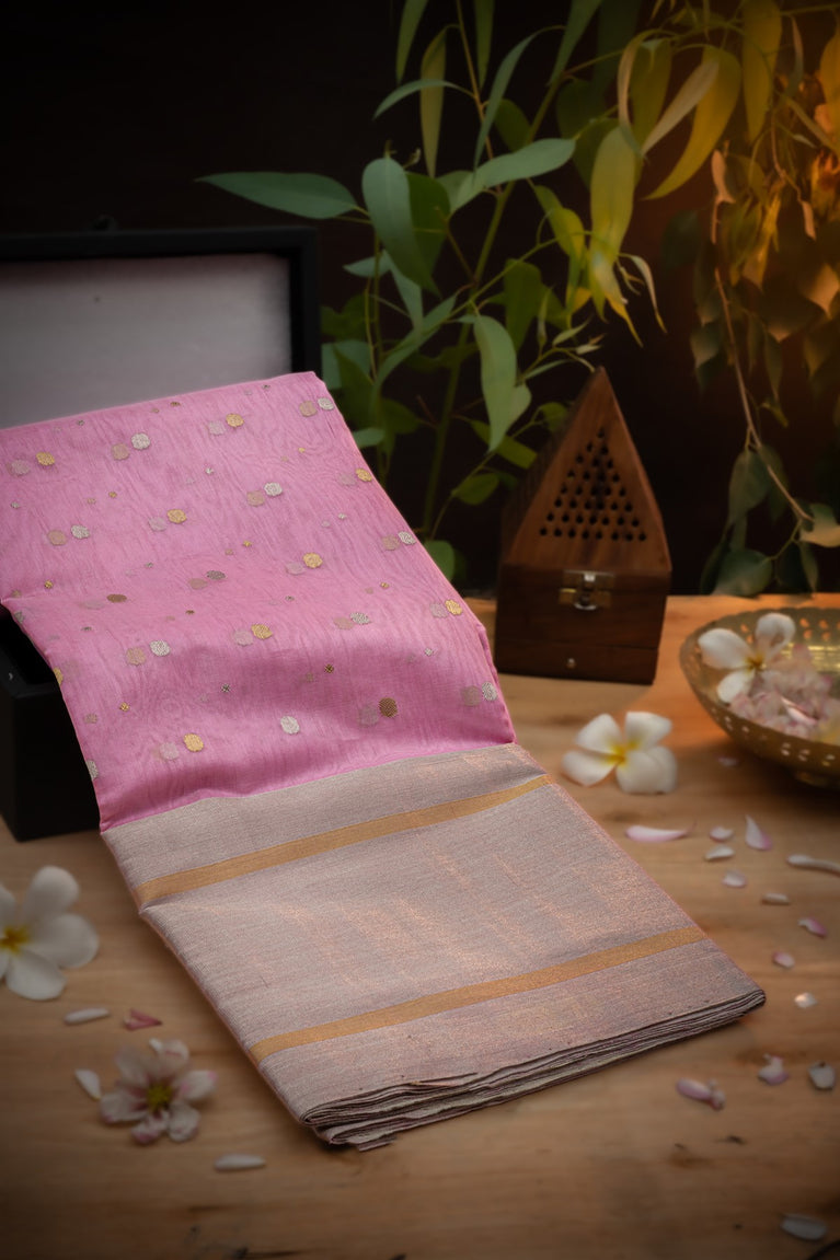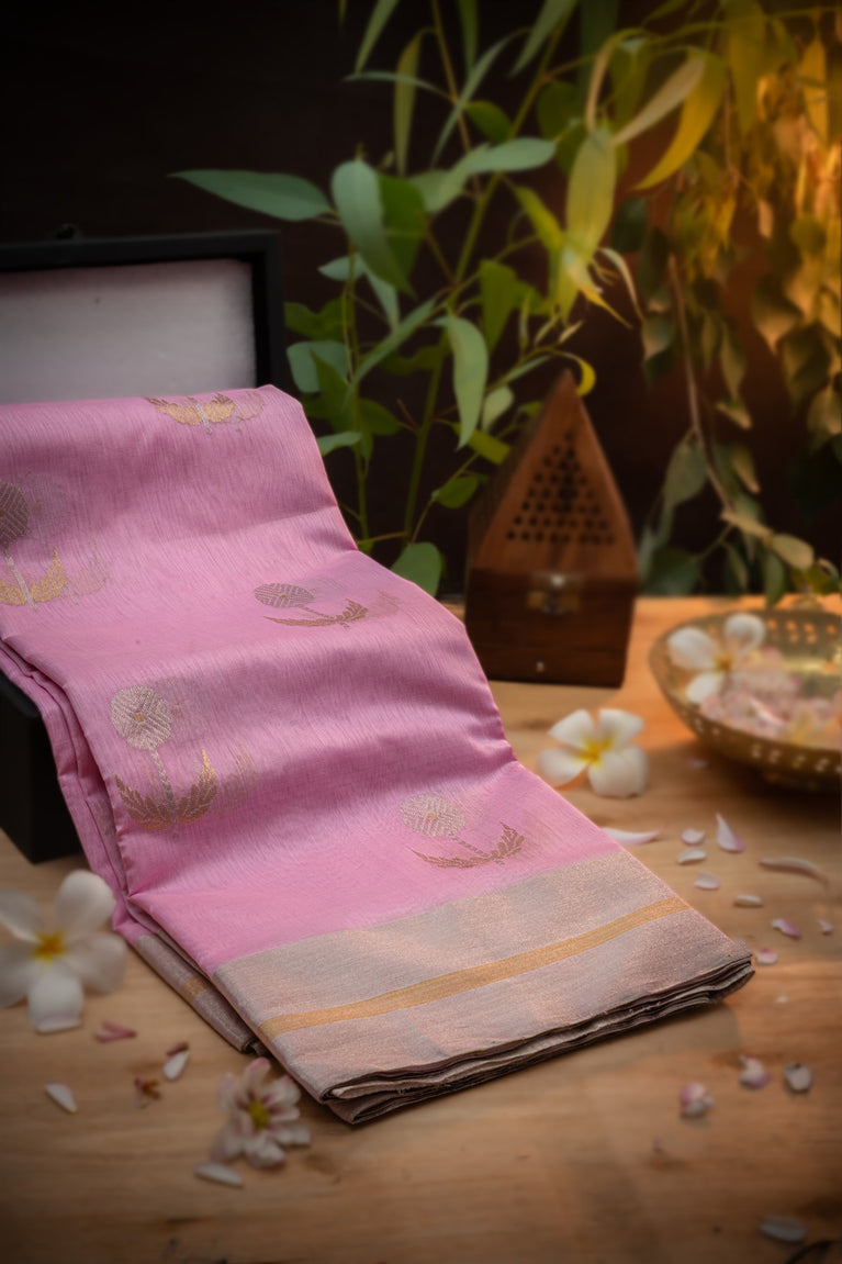 Varamahalakshmi Baby Pink & Gold Chanderi Buttis Saree