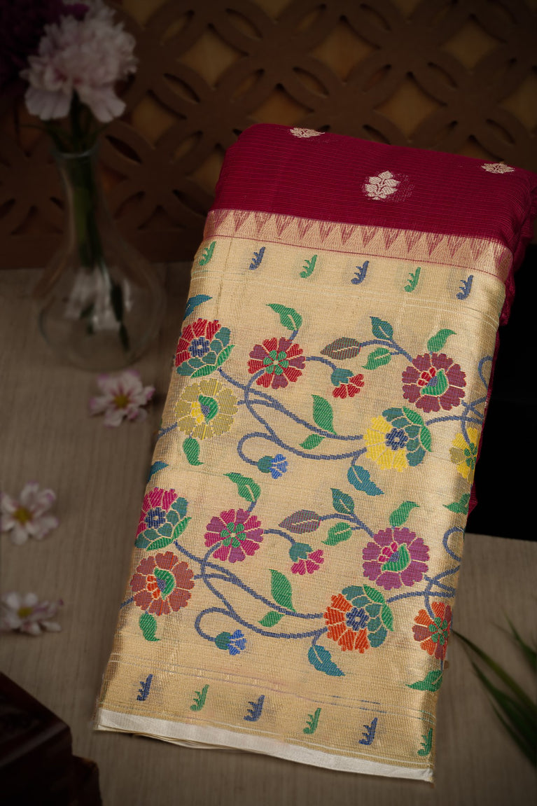 Varamahalakshmi Berry & White Fancy Buttis Saree