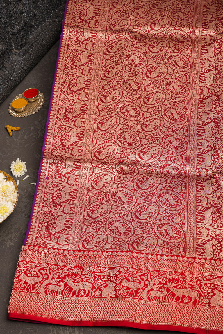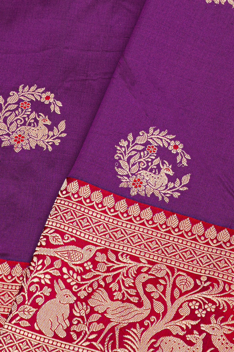 This baby pink Banarasi silk saree features exquisite Meena work on its border and motifs, showcasing traditional craftsmanship with a delicate and vibrant touch. The luxurious silk fabric offers a soft drape and subtle sheen, making it ideal for special occasions. Its intricate Meena detailing enhances the saree’s elegance, blending heritage artistry with contemporary appeal. Perfect for those seeking timeless grace with refined embellishments.