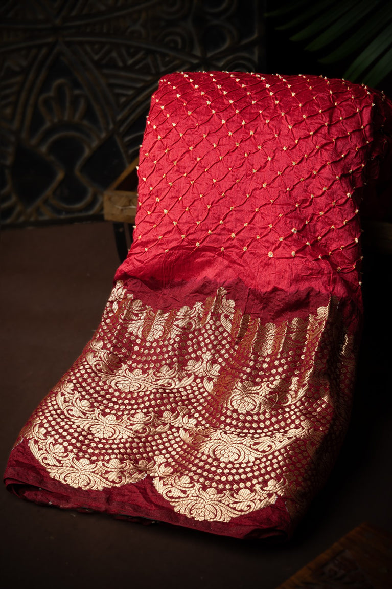 Varamahalakshmi Reddish Pink & Maroon Bandhani Bandhani Saree