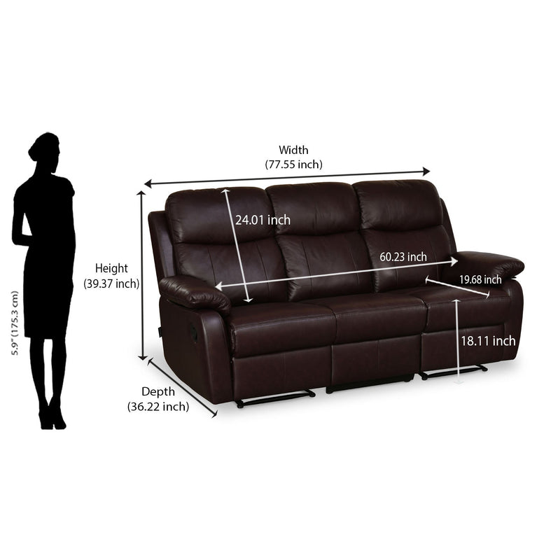 Carolina 3 Seater Sofa with 2 Manual Sofa Recliners- Brown