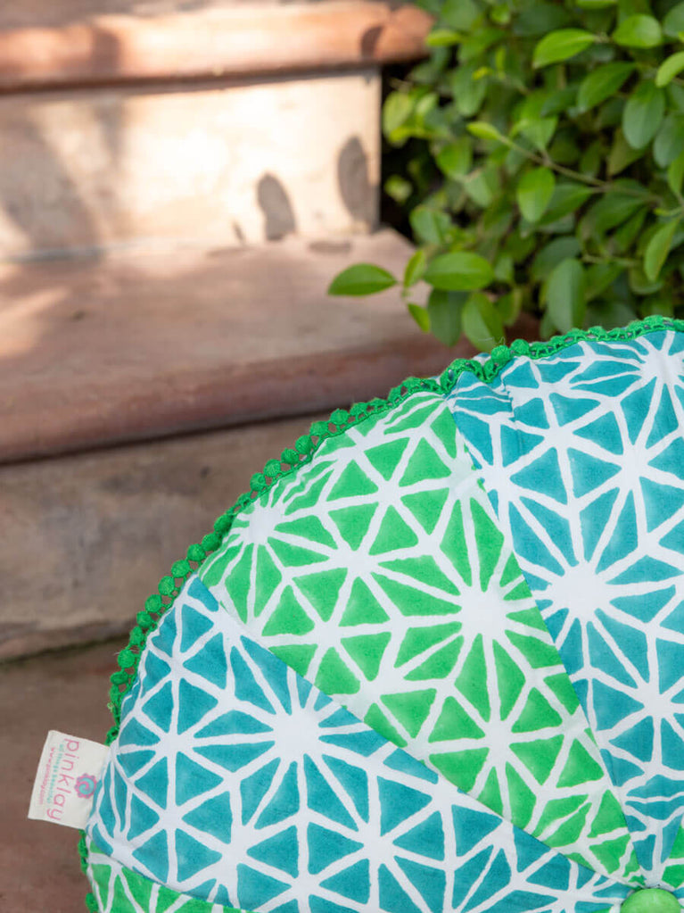 Garima Block Printed Cotton Pinwheel Cushion With Filler - 16 Inch
