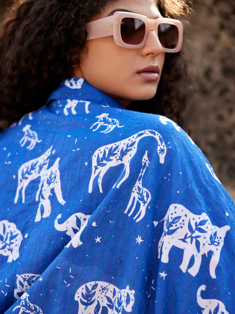 Gypsy Kantha Embroidered Block Printed Bomber Jacket