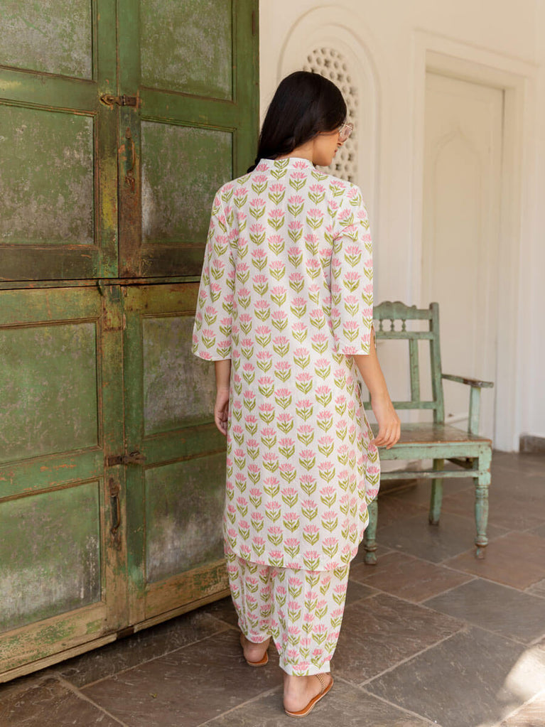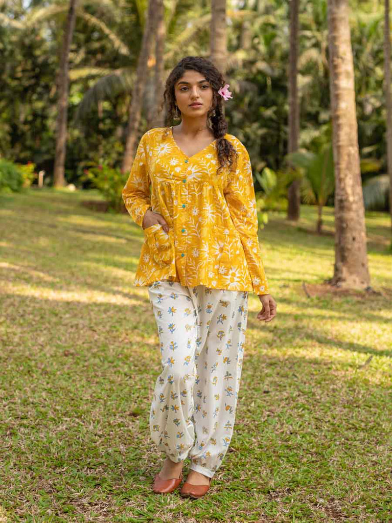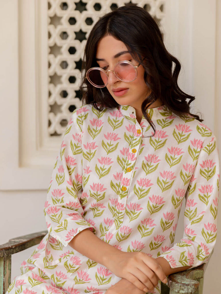 Ananaas Block Printed Cotton Top & Pyjama Set