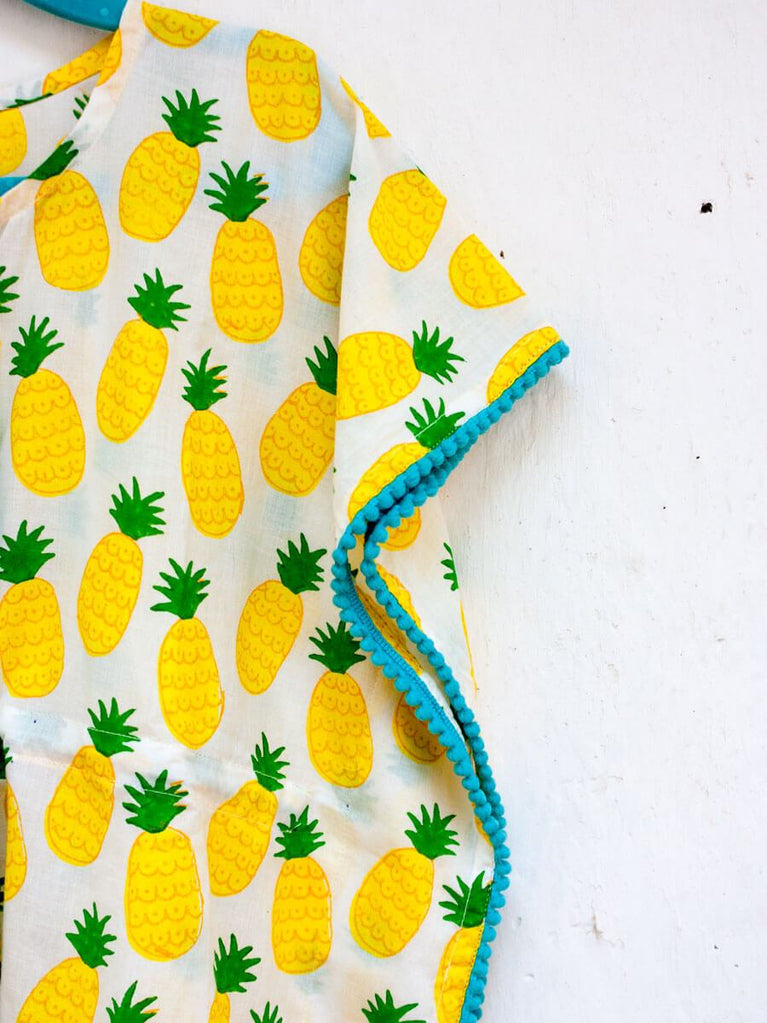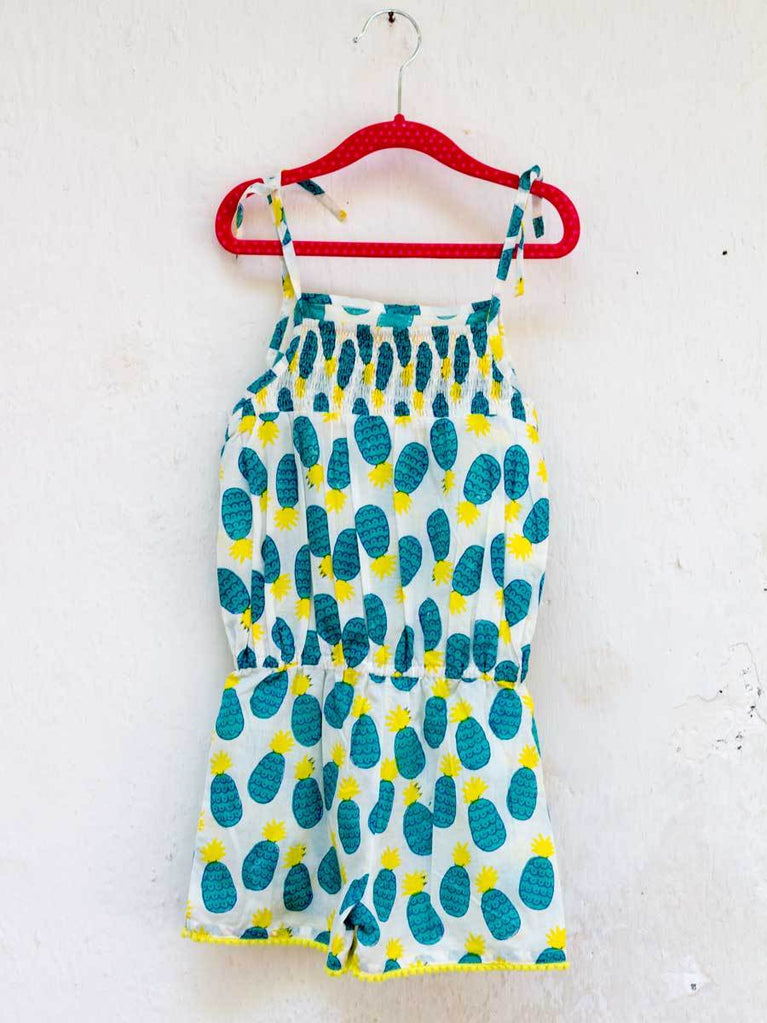 Ananaas Organic Cotton Block Printed Jumpsuit with Pompoms