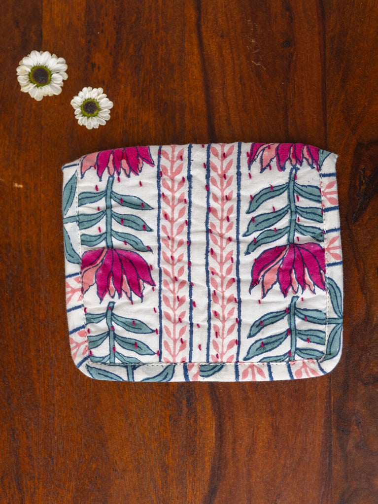 Lotus Jaal Block Printed Cotton Cushion Cover - 16 X 48 Inch