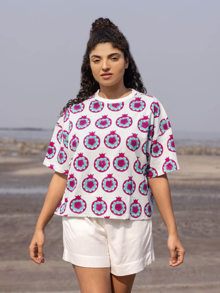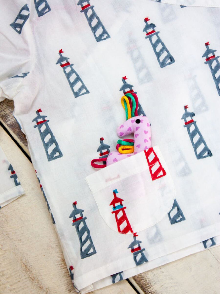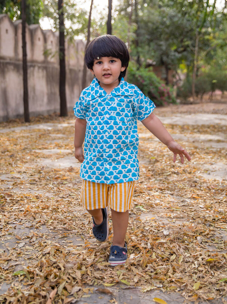 Ocean Breeze Organic Cotton Block Printed Angrakha Set