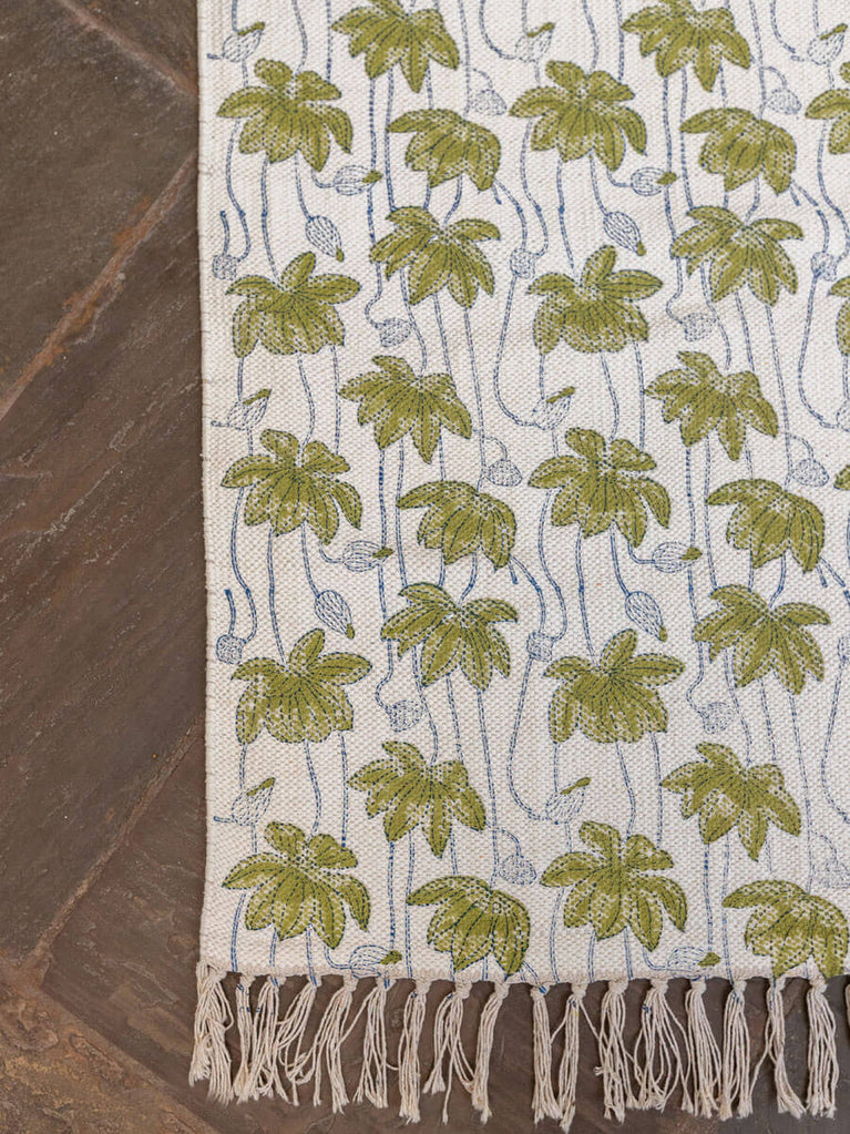Olive Lotus Block Printed Cotton Dhurrie Rug