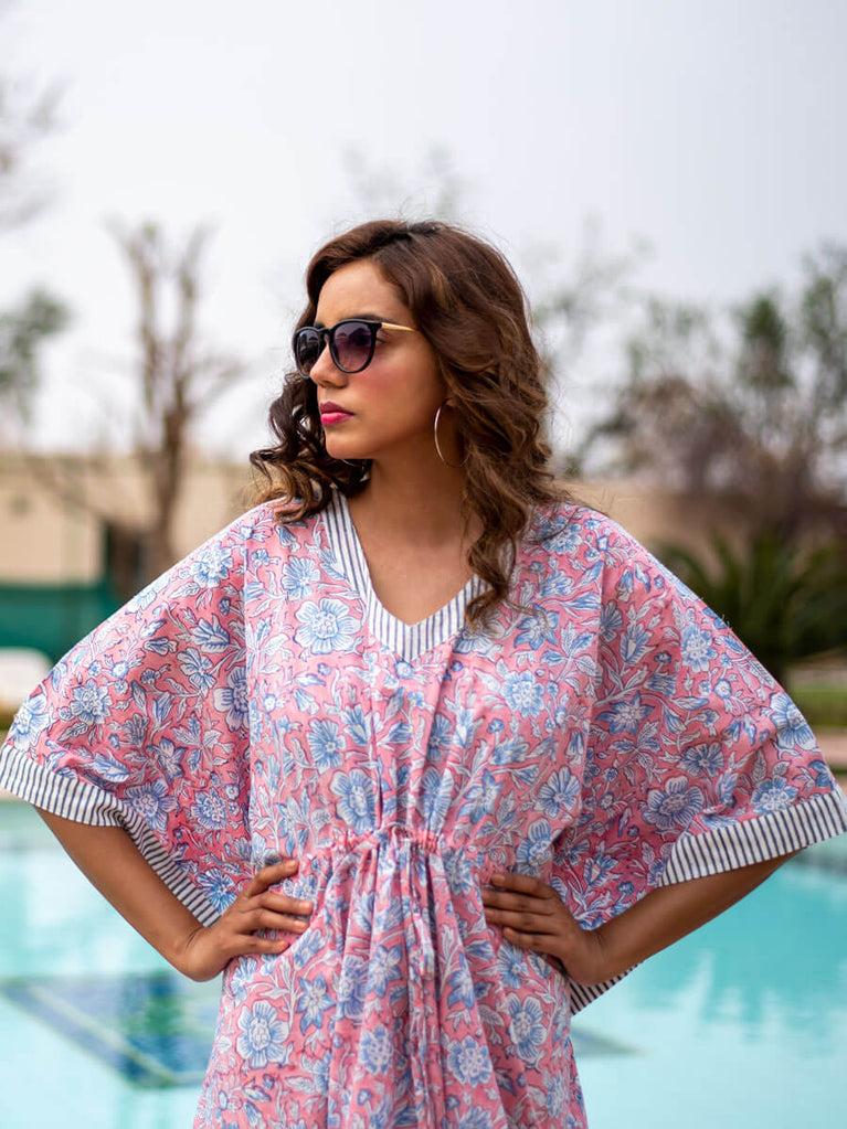 Sunset and Wine Cotton Kaftan Shirt Dress