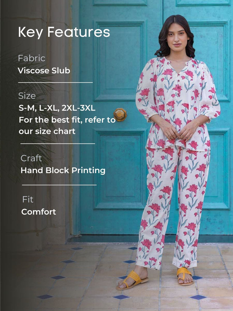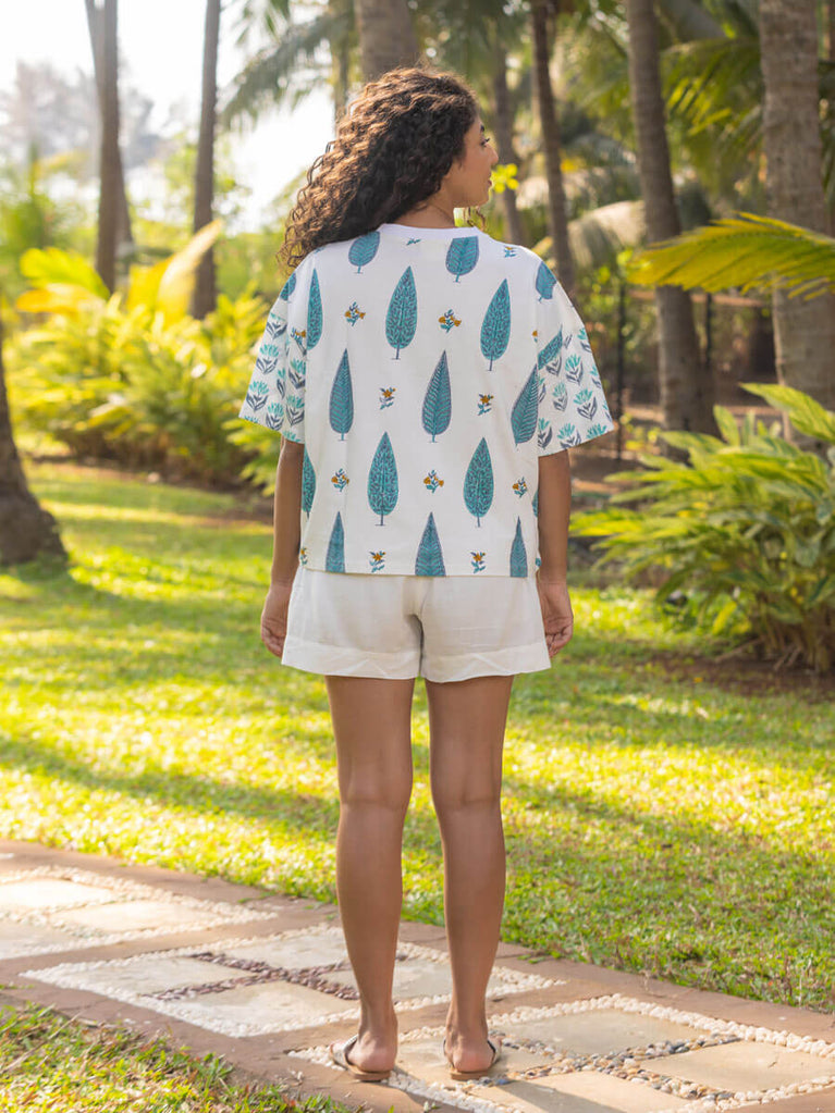 Sweet Dreams Block Printed Cotton Top & Pyjama Set