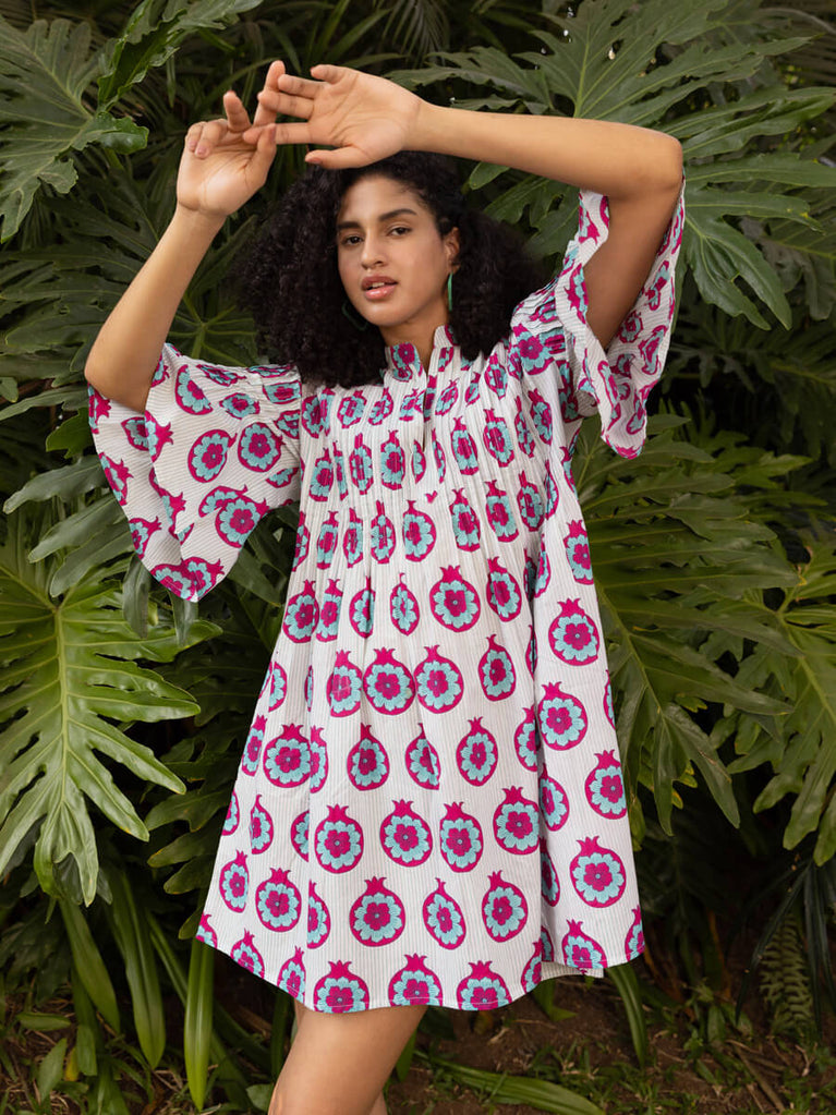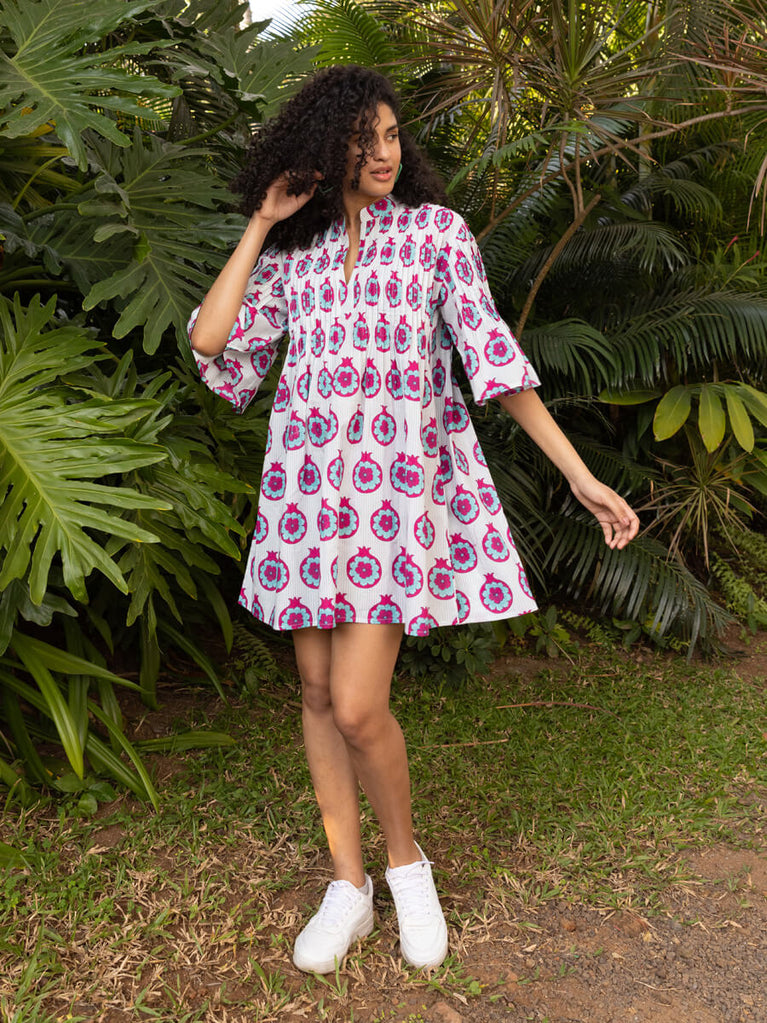 Tara Block Printed Cotton Pintuck Dress