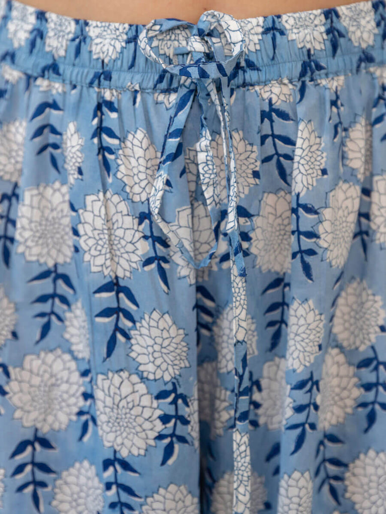 Blue Stripes Block Printed Cotton Top & Pyjama Set