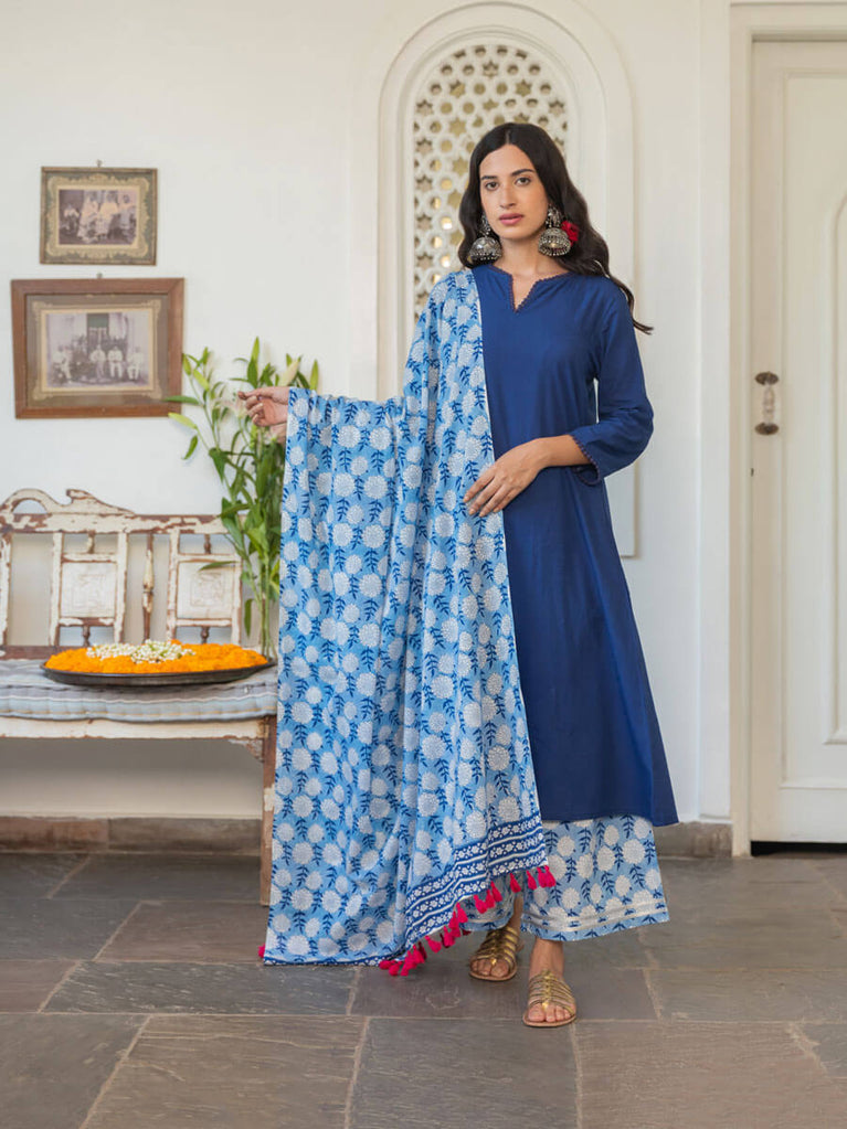 Blue Umbrella Organic Cotton Block Printed Angrakha Set