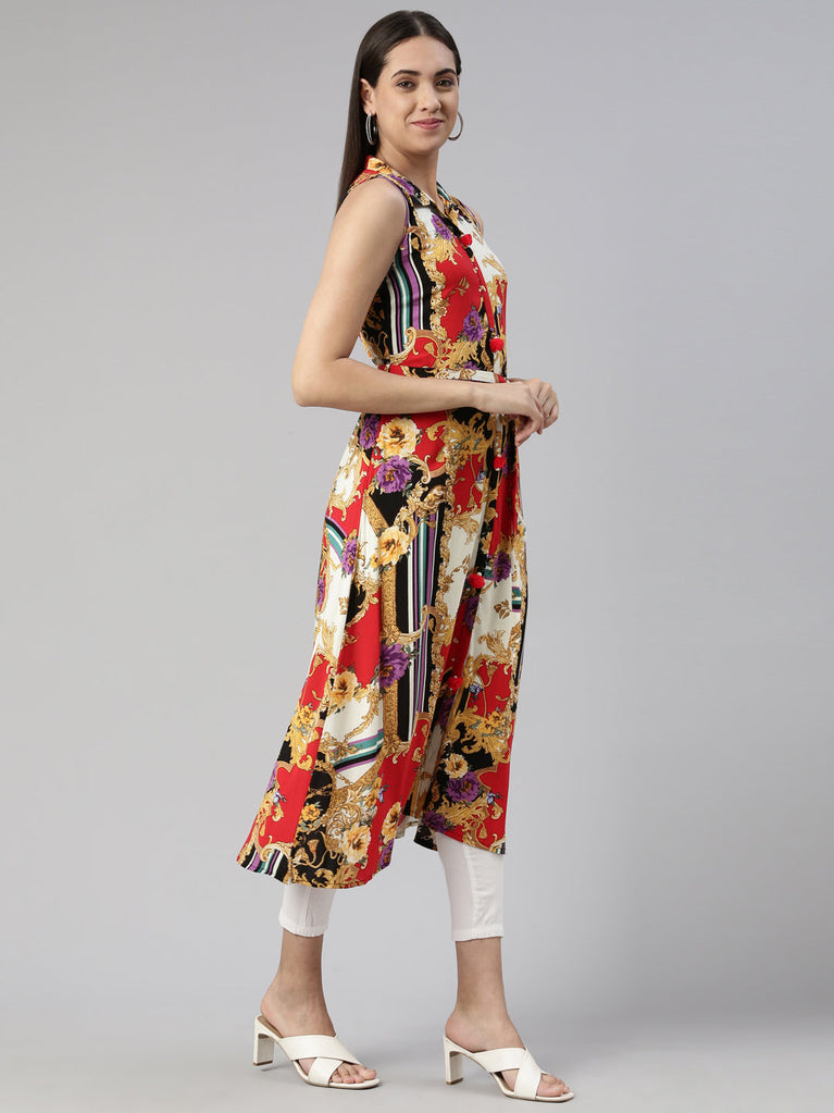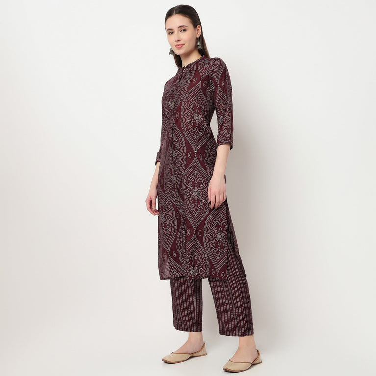 Printed Band Neck Kurta