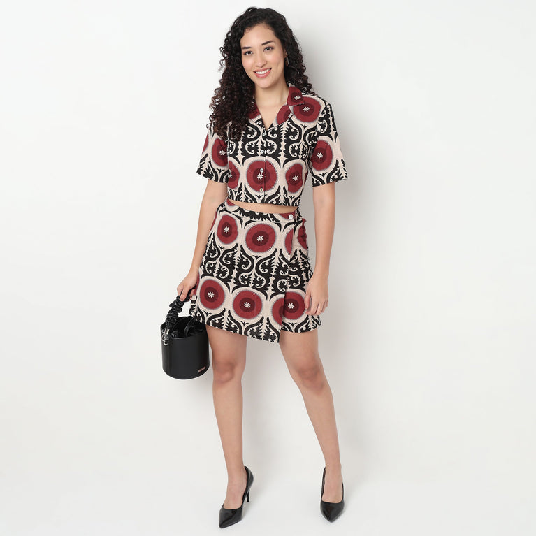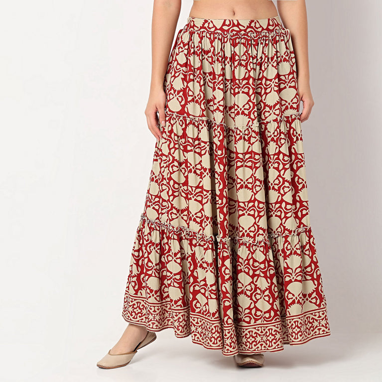 Printed Flared High Rise Skirt