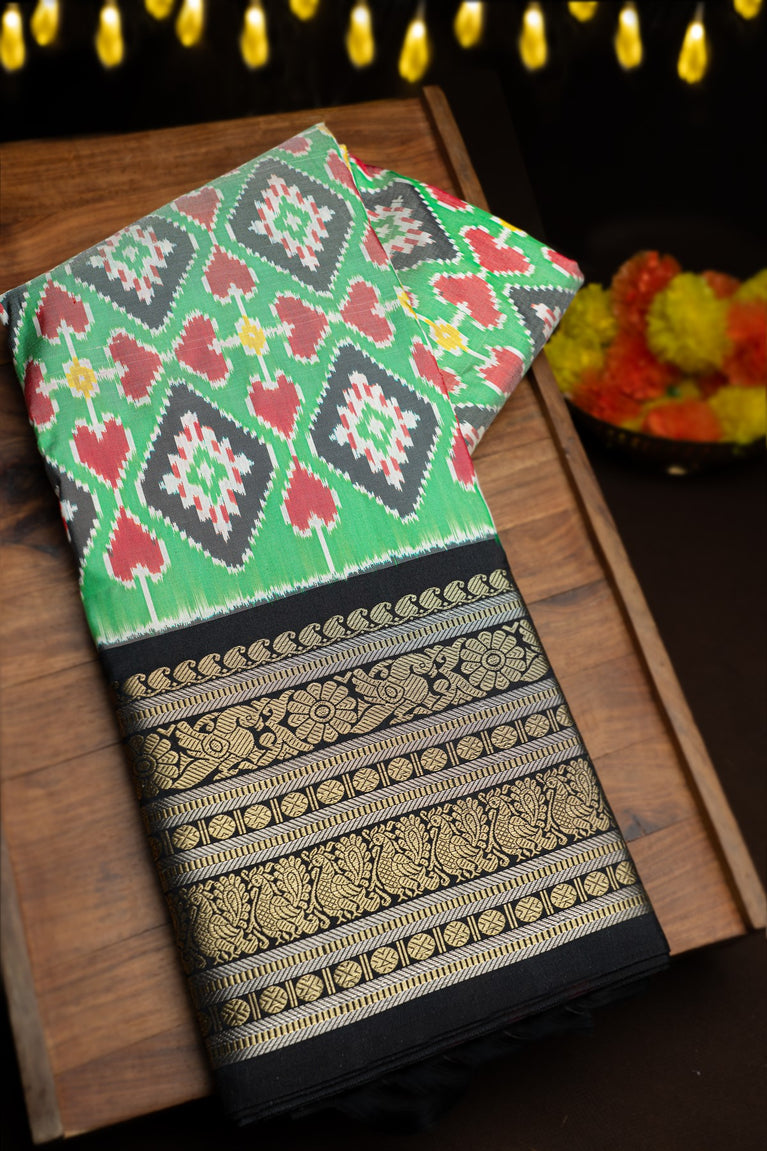 Mandir Light Green & Multi-Colour Kanchi Ikat Printed Saree