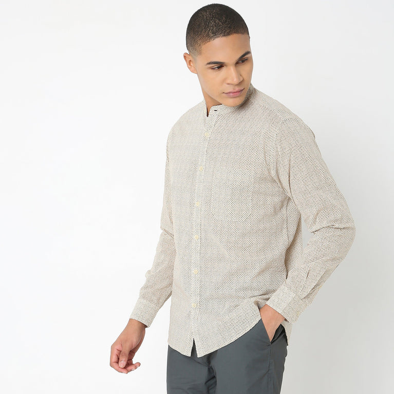 This printed pattern shirt has a mandarin collar and full sleeve. Made from cotton, it is soft and comfortable to wear.