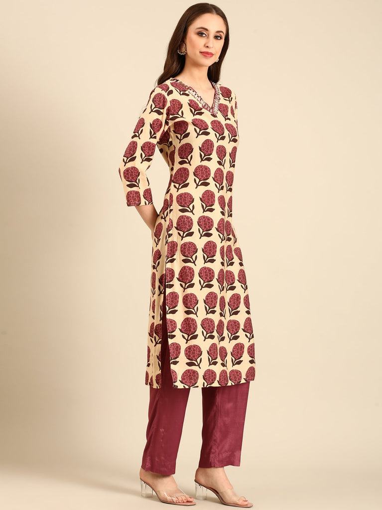 Maroon Viscose Rayon Floral Printed Two Piece Set