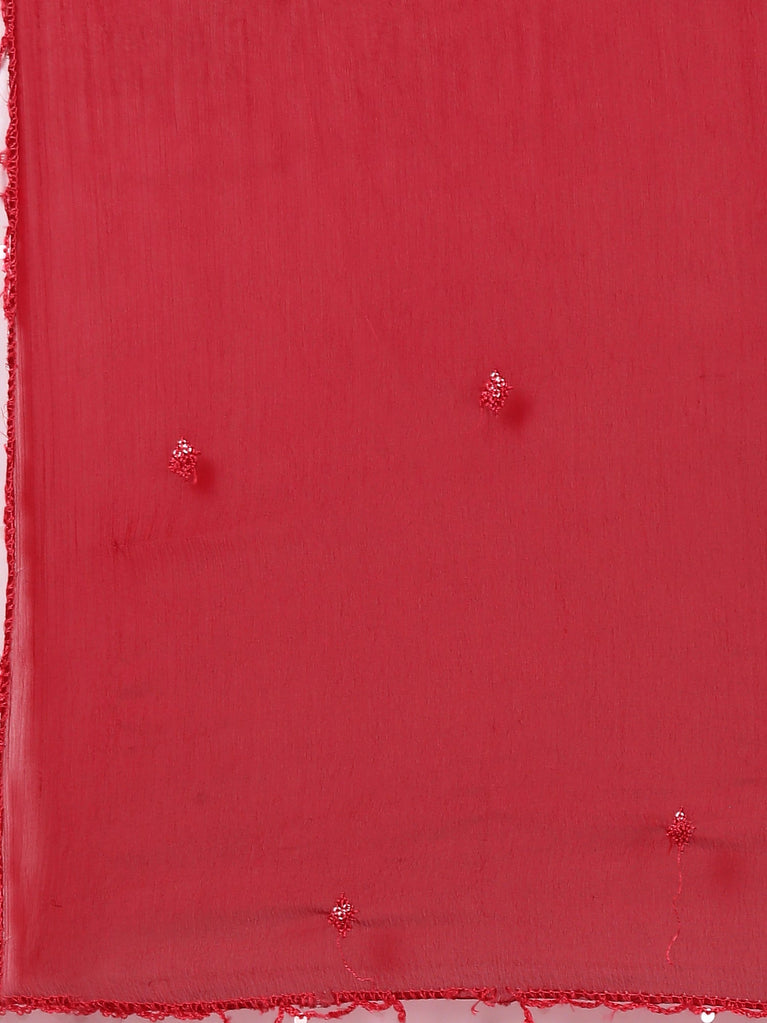 Elevate your ethnic wardrobe with this Maroon Georgette Anarkali Three Piece Set. Crafted from flowing georgette fabric, it features a gracefully flared silhouette that enhances your elegance. The rich maroon hue adds a timeless charm, perfect for festive occasions or celebrations. This set combines comfort and style, ensuring you look refined while feeling at ease throughout your day or evening.