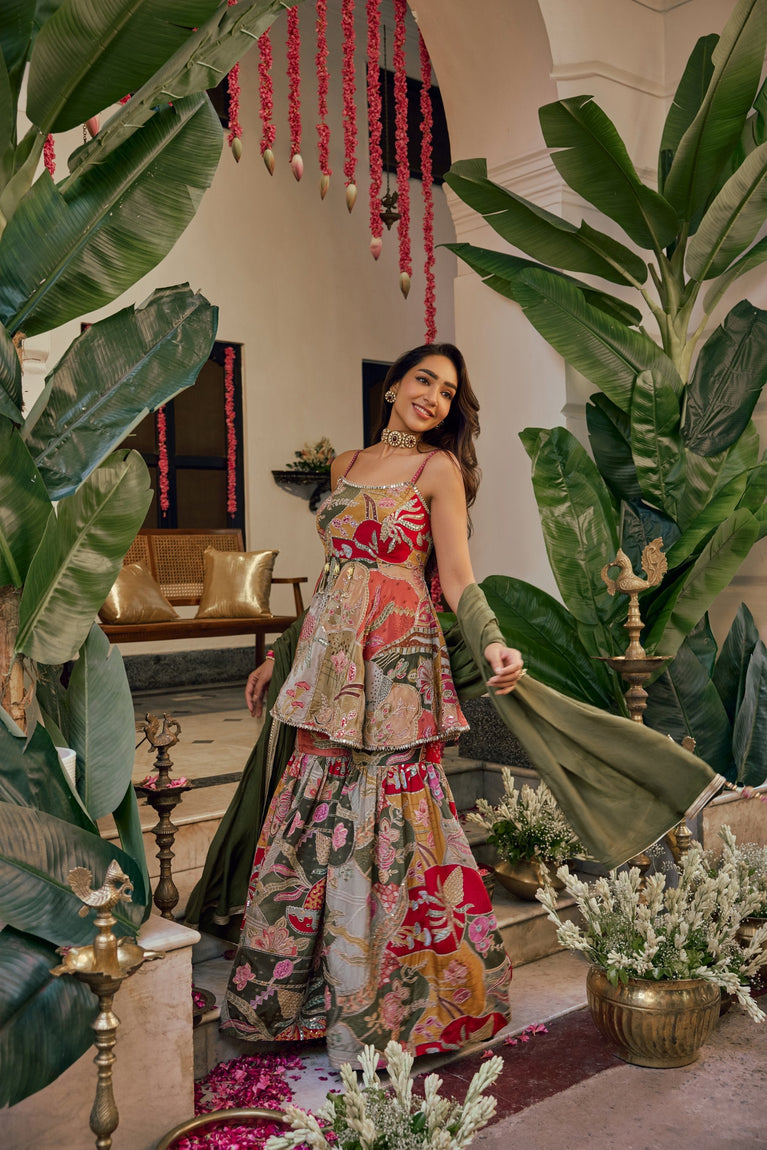 Mehadi Green Chinnon Crop Top Palazzo Set