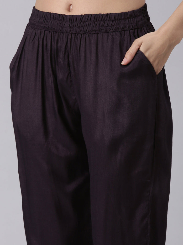 Elevate your ethnic wardrobe with this stunning black silk ensemble that seamlessly blends tradition with contemporary style. The intricately embroidered crop top features elaborate detailing that catches light beautifully, while the flowing palazzo pants offer comfort without compromising on elegance. Perfect for festive occasions, weddings, or upscale gatherings, this two-piece set delivers sophisticated sophistication. The luxurious silk fabric drapes gracefully against your skin, ensuring you feel as refined as you look. Make a lasting impression with this versatile piece that transforms any celebration into a fashion moment.