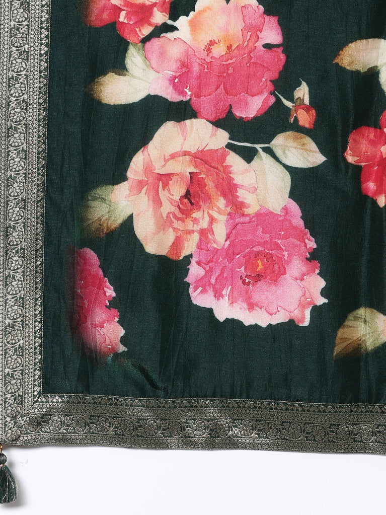 Bottle Green Vichitra Fabric Shoulder Kali With Embroiderey Duppata