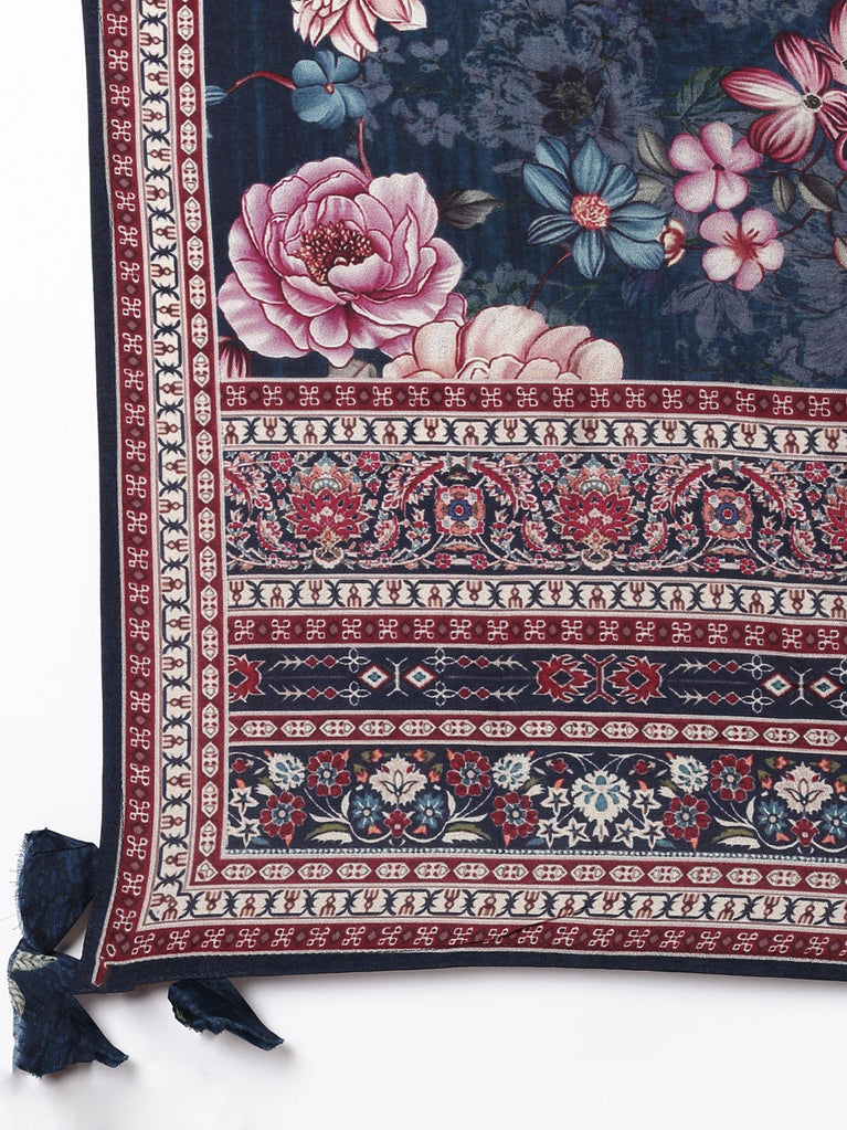 This Blue Muslin Printed Three Piece Set combines elegant comfort with timeless design. Crafted from soft muslin fabric, it offers breathable wear and a delicate texture perfect for all-day ease. The intricate blue print adds a refined touch, while the coordinated pieces ensure a polished, effortless look for any occasion.