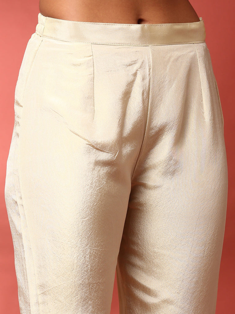 Elevate your ethnic wardrobe with this Cream Chanderi Embroidery Three Piece Set. Crafted from luxurious Chanderi fabric, it features delicate embroidery that adds a timeless charm. The set is thoughtfully designed for both comfort and elegance, making it perfect for festive occasions or sophisticated gatherings. Its breathable texture ensures ease of wear while maintaining an exquisite appearance.